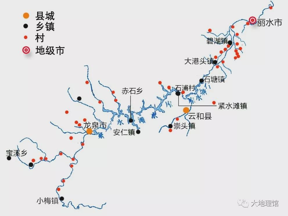 甌江水系龍泉溪段水系及聚落圖
