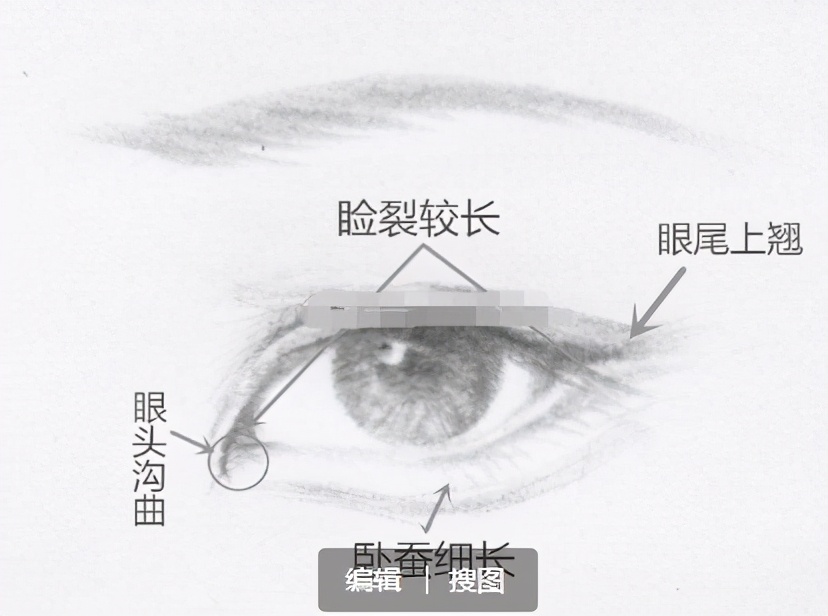 瑞鳳眼是屬於比較細長的眼睛,瞳孔和眼角之間的距離比較貼近,而且瞳孔上方有部分被上眼皮覆蓋了,構成眼角和瞳孔的黃金比例。