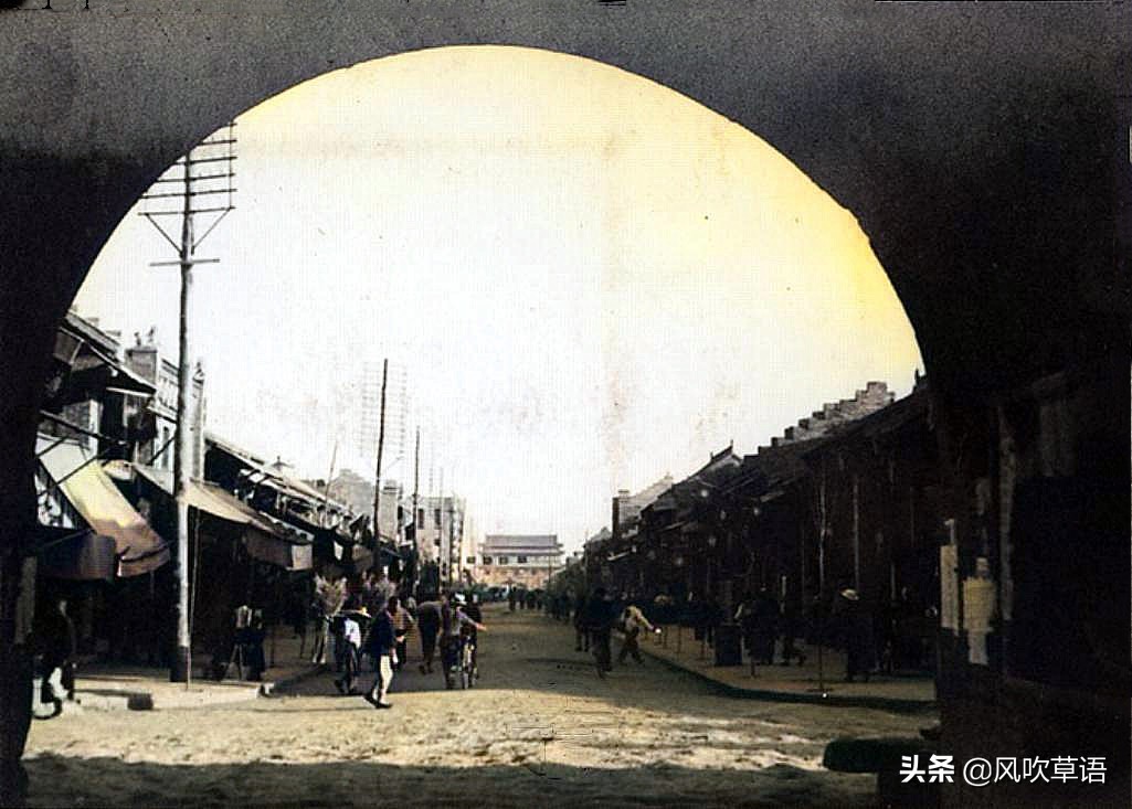 街道兩邊的店鋪建築造型各異,一排高高的電線杆,是密密的多層橫擔, 在當年,這是現代和繁華城市的象征。