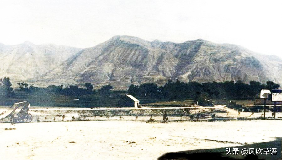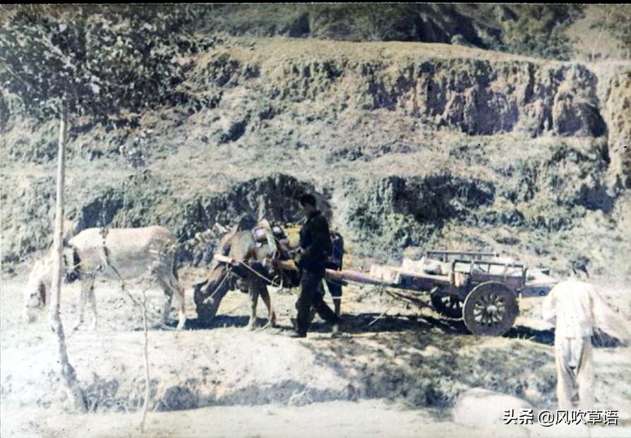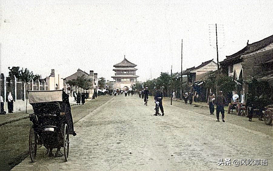 距離西安越來越近,遠處是起伏的山巒,圖片的左下角有一輛人力車,頗出意料之外。