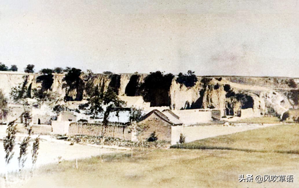 路邊幾棟民房靜靜地依靠在黃土崖下,仔細看院落裡還有一些窯洞。窯洞是人與自然深度融合的產物,深入到土層之內,冬暖夏涼,特別適合居住。