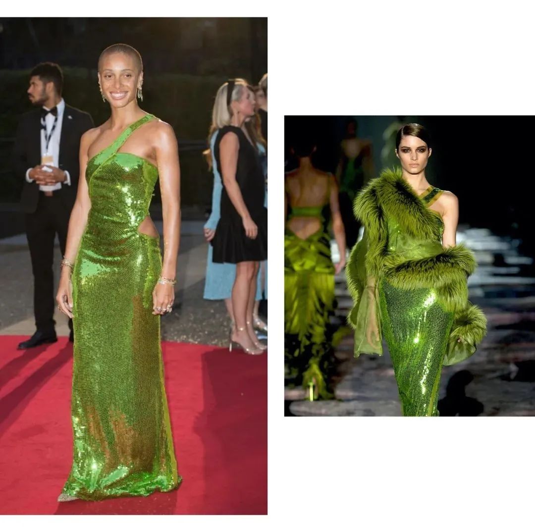 2019年GQ年度颁奖礼上,Adwoa Aboah 穿着Tom Ford时期2004年的Gucci礼服,一袭“草木绿”色亮片礼裙跟大美女的古铜色肌肤十分相衬。