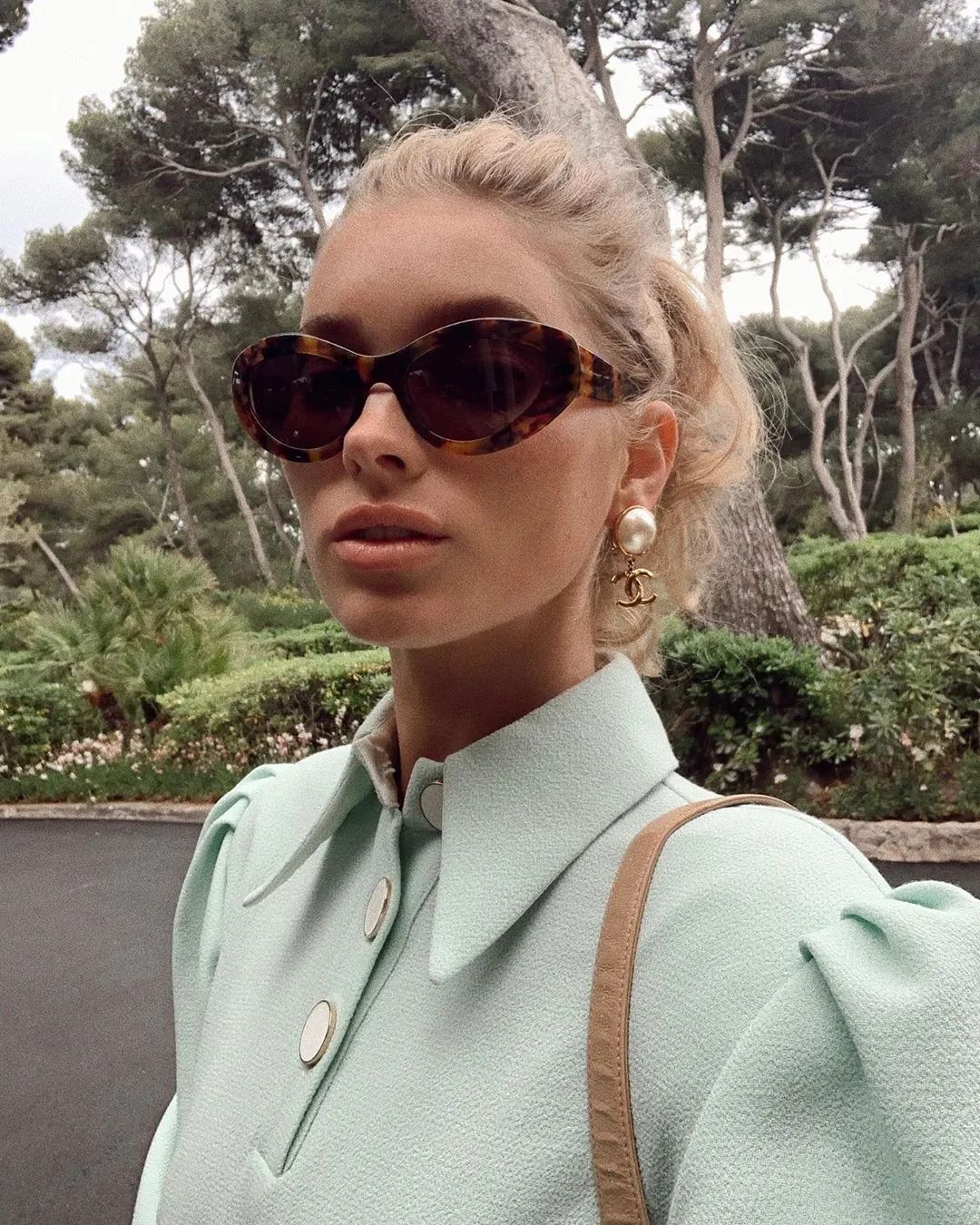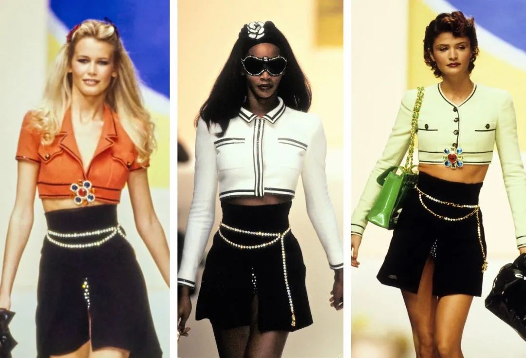 Chanel 香奈儿随着古着的流行,Vintage Chanel 迷越来越多,肯豆、泫雅、水原希子、jennie 到虞书欣、王霏霏、王鸥...都超会买,每次看到她们的战利品,感觉钱包要炸裂了。欣欣子的美照中,经典的vintage包袋几乎都入了吧,中间的卡其色香奈儿单肩包,“二手货”大概小一千就能入了。她还经常跑去网红vintage店去淘宝,试到好看的单品不忘拍张美美的照片,这套淡蓝色小香风外套清新又优雅,好适合她。之前肯豆就穿着 Vintage Chanel 小香风套装搭配同品牌choker,内搭简单的白色吊带,轻松演绎复古cool girl。超模Elsa Hos妥妥的chanel迷,“大圆环” vintage Chanel logo耳环虽然乍一看有那么一点drama,包袋衣橱里不要太多。“人间香奈儿”金智妮就是出了名地会穿vintage Chanel,擅长复古单品和潮流单品的混搭。比如BLACKPINK回归MV中的这件超华丽斗篷,居然就是用古着改造的。jennie solo MV 中穿着黑色泳衣的造型,来着古着Chanel。最近她和Selena Gomez 合作视频《Ice Cream》,身上穿的裙子是16年前的Chanel连衣裙。出圈的中古服装造型是下面这个机场私服,BM风上衣是90年代的Chanel。回顾一下Chanel 1995年春季系列,这一季出了很多露腰小短装,就是当下流行BM风的意思。— 02 —