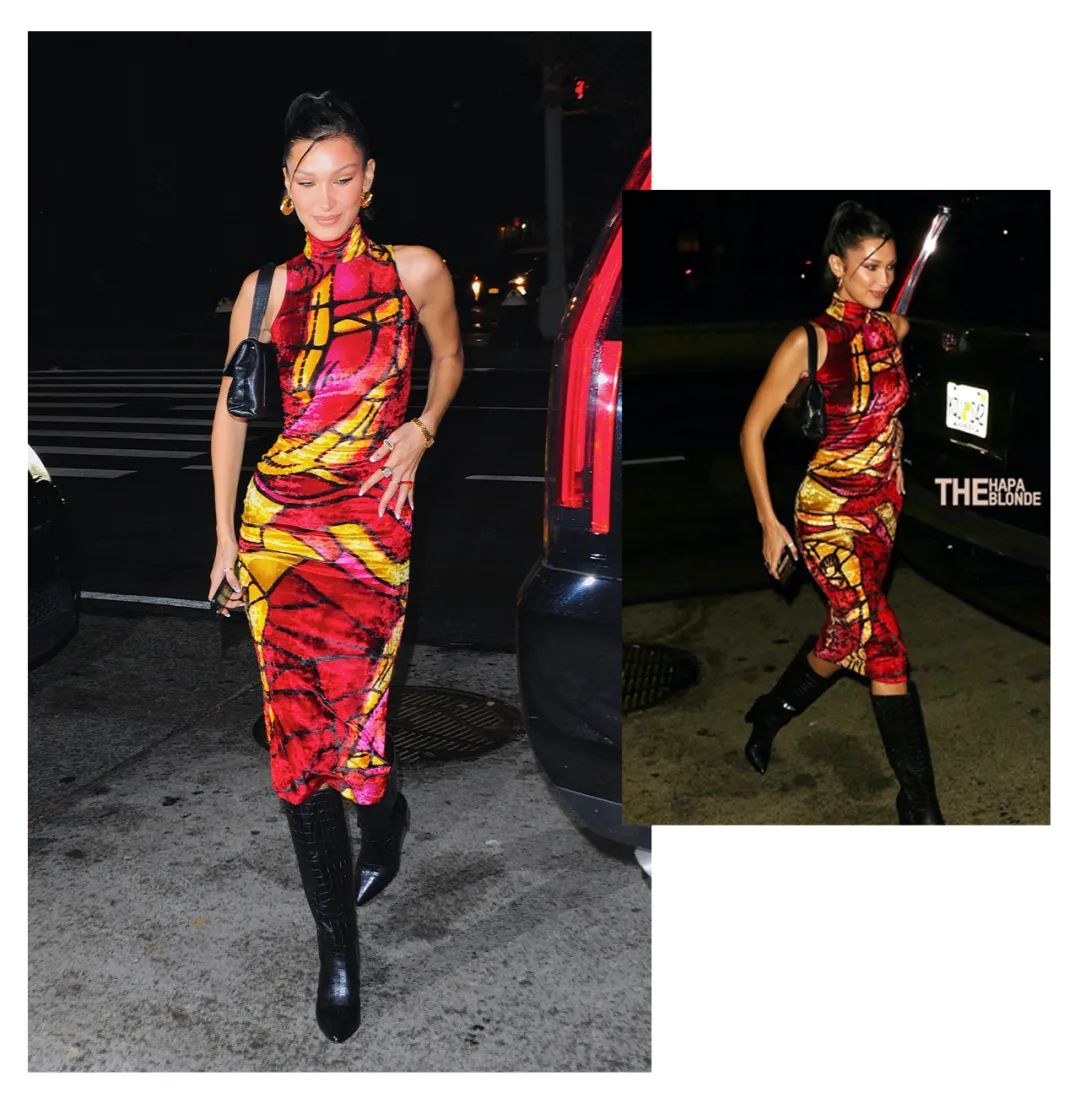 Dior 迪奥Dior的旧款也风靡到不行,大火的马鞍包之前在时尚圈引起了不小的轰动,去年奢侈品涨价的势头正猛,再随着老花潮流的加持,Dior 的Oblique老花马鞍又涨了将近3000的价格,想一想越早入了就是越赚了吧。紧接着,另外两款旧款的包袋Dior Street Chic 和 Dior Chic Punk 要迎头赶上了。仔细看bella背的这款包是Dior vintage Street Chic款。Dior Chic Punk 舒适又chic的皮质宽肩带、扎眼的logo五金方扣优雅的同时增加了街头的感觉。包袋无论入哪一只都不亏,刚提到除了香奈儿的首饰,elsa hosk买的很多的还有Dior,尤其是金灿灿夸张的设计就更爱不释手了。Dior vintage的礼服,bella生日会就穿了Galliano时期的丝绒裙,夸张的色块,仿佛把抽象主义画作穿上了身。— 03 —