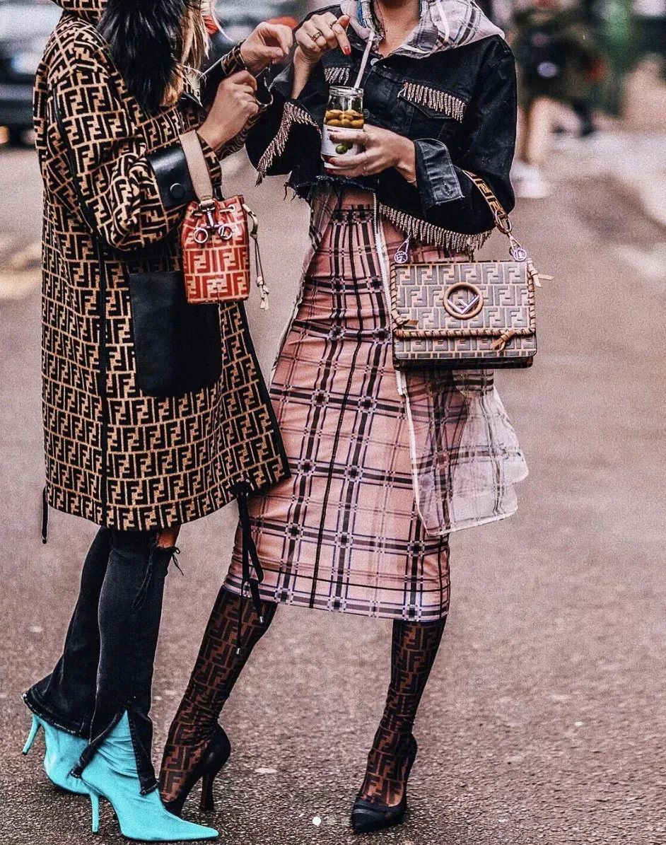 FENDI 芬迪Fendi的存在感也很强,尤其法棍包和老花款就是取之不尽用之不竭的资源,最近老佛爷设计的双Flogo也加入了行列中。腋下包如此火爆,Fendi法棍包绝对是也成为各种时尚icon的心头好。中古款的法棍包现在货源还是挺多的,但是价格也是比前几年贵了不少。如果你也是走在时尚尖端的人,它不能没有。其次,双F LOGO包就很OL,即使非中古款也很有复古的味道,是职场时髦精们,绝对不能错过的。Fendi老花元素独具叛逆与时髦的感觉,不用担心驾驭指数,仔细花点心思就有很多的玩法。混搭和单穿都可,Fendi monogram老花其实有点特别,而且很多新包虽复刻的logo,款式上没有老Fendi那种厚重感。总之,无论是原版还是复刻,fendi都还是很值得。时髦精宋妍霏的Fendi古着高腰款搭配百T可以更好地提亮整体效果。— 05 —