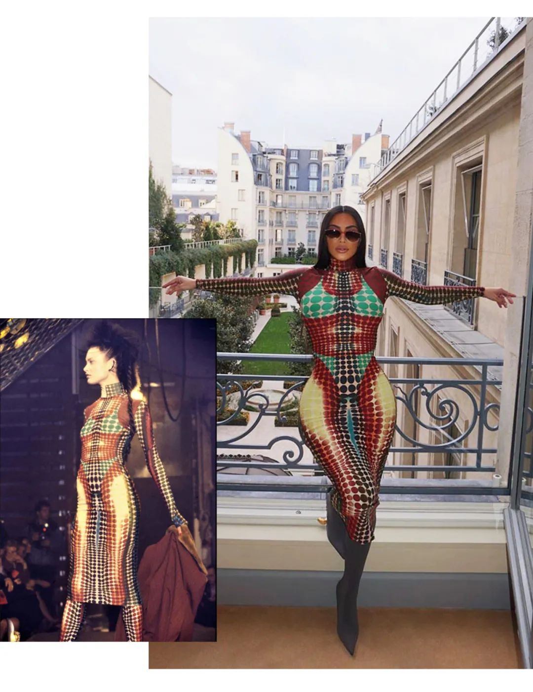 Jean Paul Gaultier 高缇耶说到考古,怎么能不提到设计鬼才Jean Paul Gaultier呢。不仅是小妹爱穿,kardashian家族的其他几位姐姐也对Jean Paul Gaultier过去的设计情有独钟。考古Jean Paul Gaultier就是仅此一款,绝无第二版,肯豆这身Jean Paul Gaultier挂在衣橱里你可能会拒绝,但是上身真香啊,不过没有这衣架子身材和高颜值,只怕一般人穿不了。Kylie Jenner 最近出街穿的这件20世纪90年代Jean Paul Gaultier的“Fight Racism”连衣裙,配色和图案都充满“旧衣服”的气息。肯德基三姐妹都很狂热,比如Kim被做成IG滤镜的造型,身穿1995年的Jean Paul Gaultier设计,这套有没有很熟悉的感觉。Bella Hadid 街拍中也发现不少穿着 Jean Paul Gaultier旧款的look。好吧,虽然驾驭起来难,但是不否认它真香啊。— 06 —