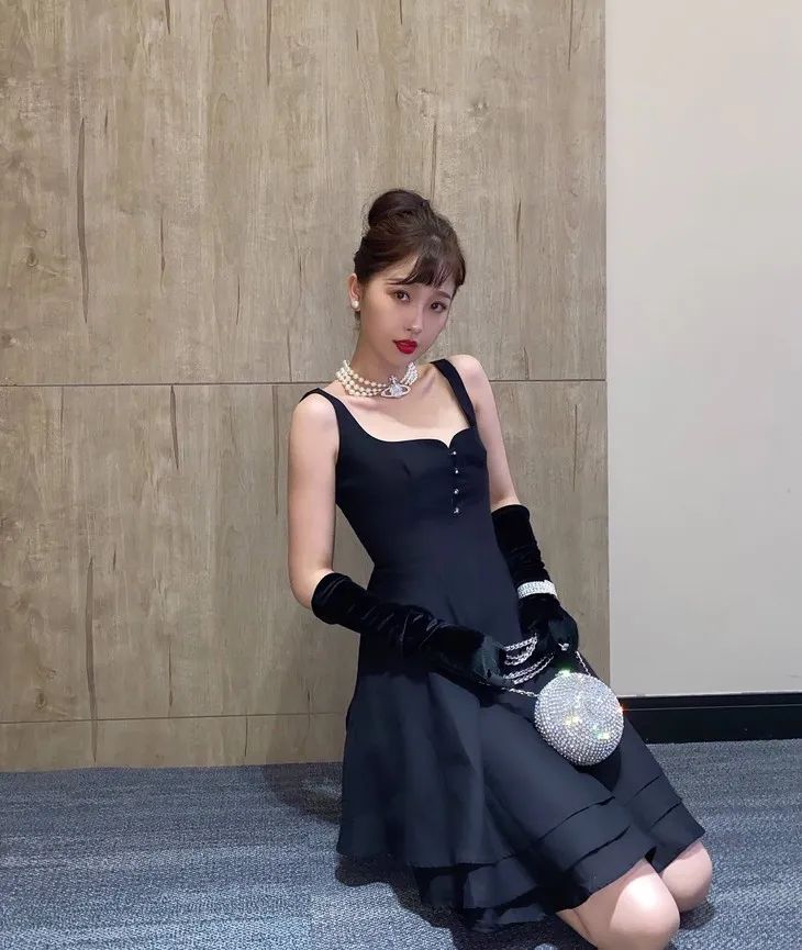热巴这边,也被挖出了穿“旧礼服”,来自于日本品牌Yumi Katsura,还是过季款。