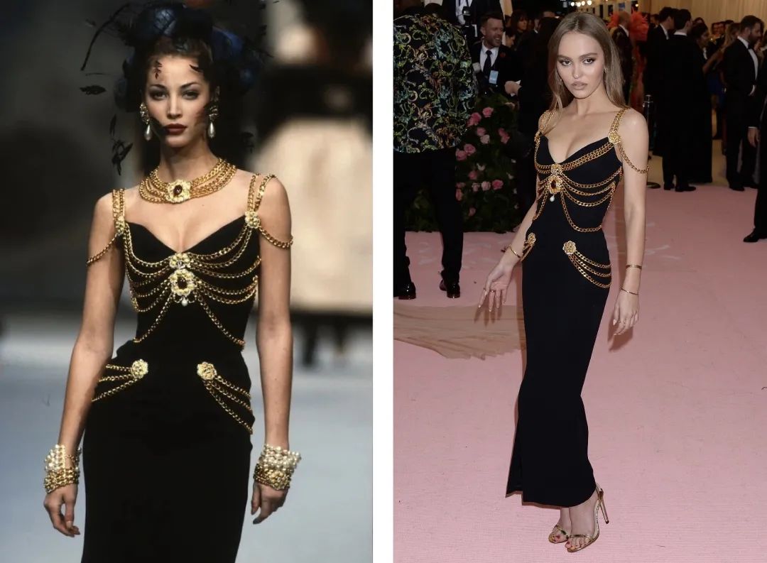 另外,像是Lily-Rose Depp在参加Met Ball时穿的是Chanel 1992年的vintage,这条裙子当年由传奇超模 Christy Turlington 演绎,成为经典look之一。
