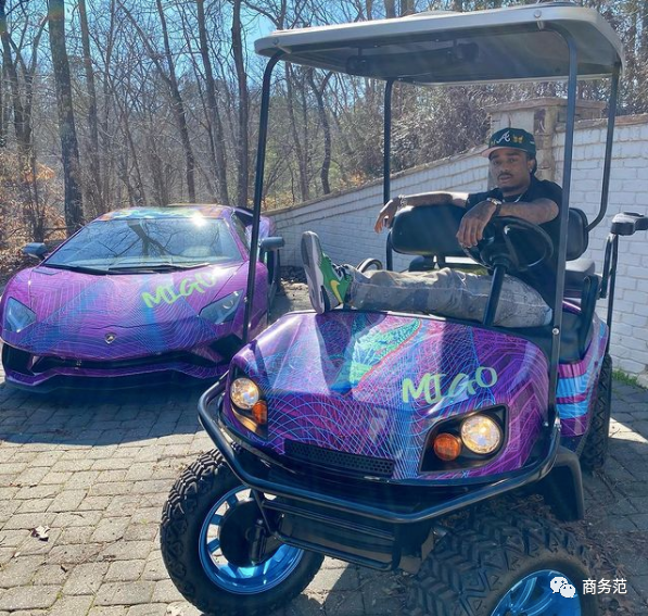 有的還把交通工具配套曬,說唱歌手Quavo就把他的代步車刷成了和蘭博基尼一個顏色。