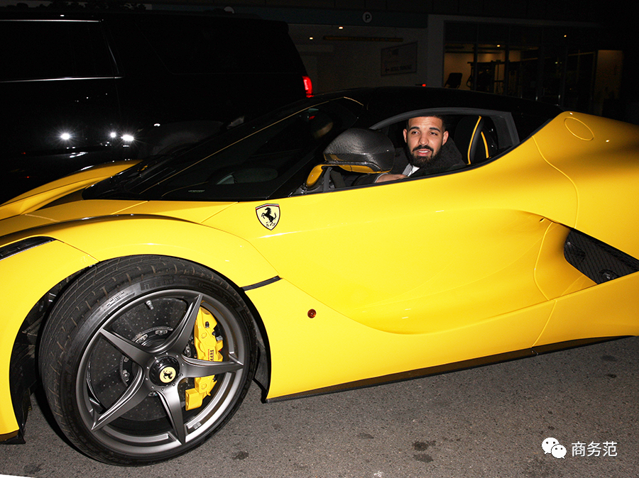 不僅在地上曬,還在天上曬。Drake之前買了一輛明黃色的拉法,是他出街最愛開的座駕。