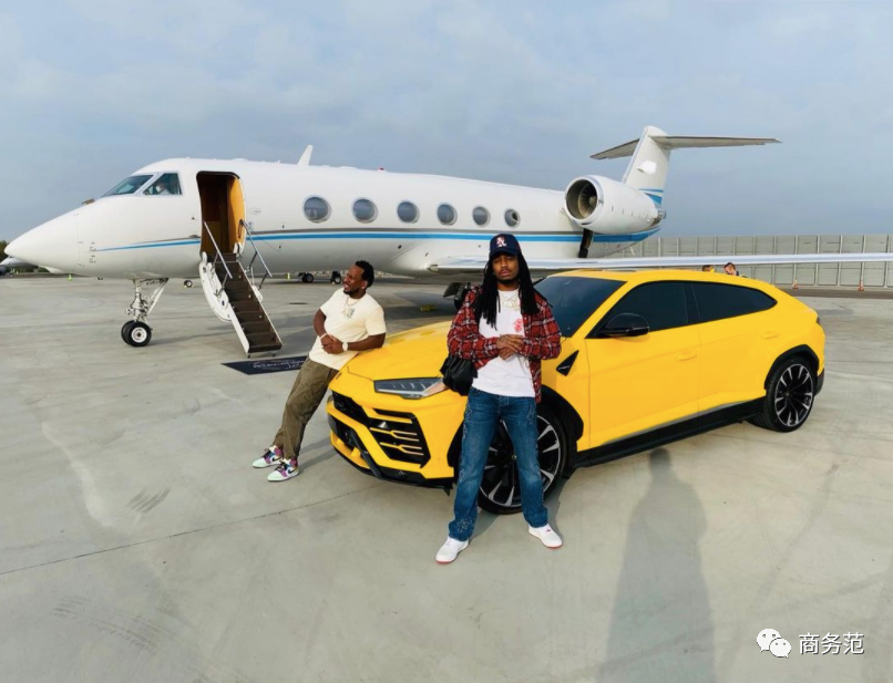 他也把一輛蘭博基尼URUS豪華SUV和他的私人飛機擺在一起,壕氣滿滿。