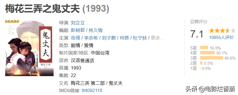 而且這部劇也是著名的《梅花三弄》系列的其中一部,和大家所熟知的《水雲間》和《梅花烙》齊名,只是比起後兩部的槽點多多,《鬼丈夫》的確顯得更加的赤誠。