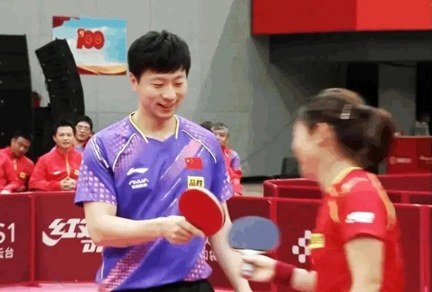國乒奧運熱身賽上,馬龍和劉詩雯碰拍一笑,讓飯姐想起五年前的那個夏天。