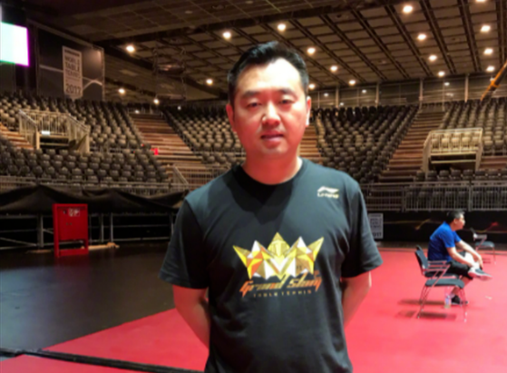 而如今只看見馬龍和劉詩雯在場內揮拍比拼,賽場內早已不見兩位教練的身影。