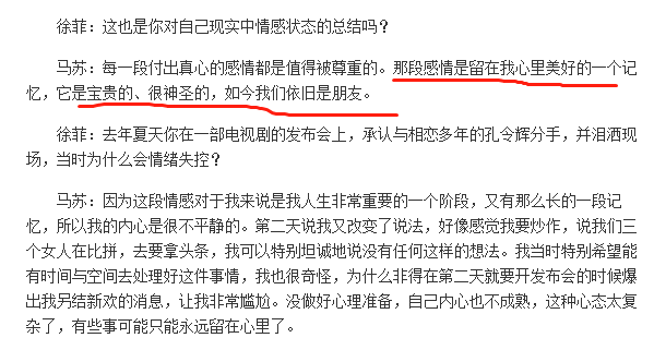 2014年,馬蘇再次提起這段感情,她說“這段感情是留在我心裡美好的一個記憶。”