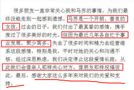 7月28日,孔令輝也發文回應,在文中他稱贊馬蘇“開朗、善良”,兩人分手是因為兩人各自忙於事業,聚少離多。