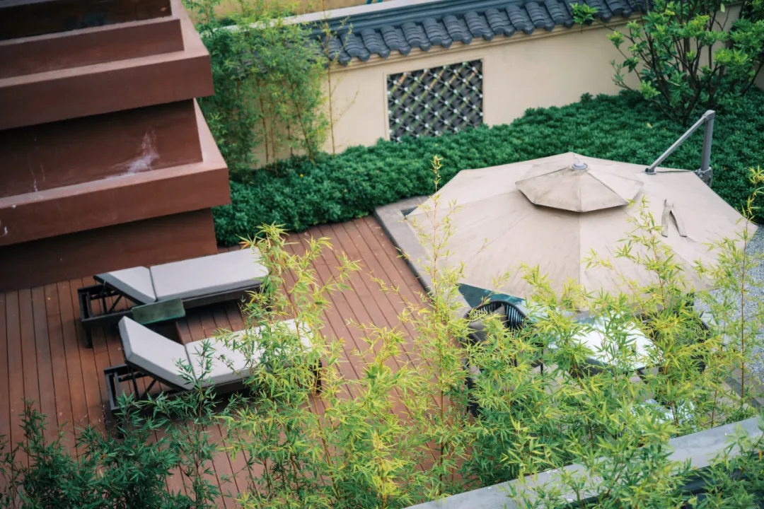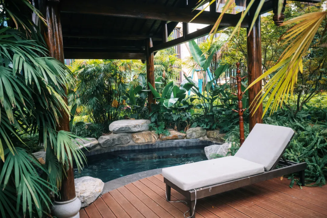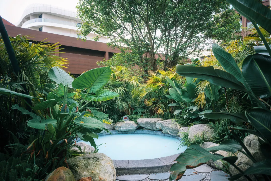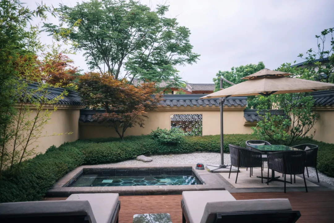 然后有个私家的小院子,里面有汤池。还好这是开在成都,要是这个温泉别墅在江浙沪,冬天起码3000+吧。