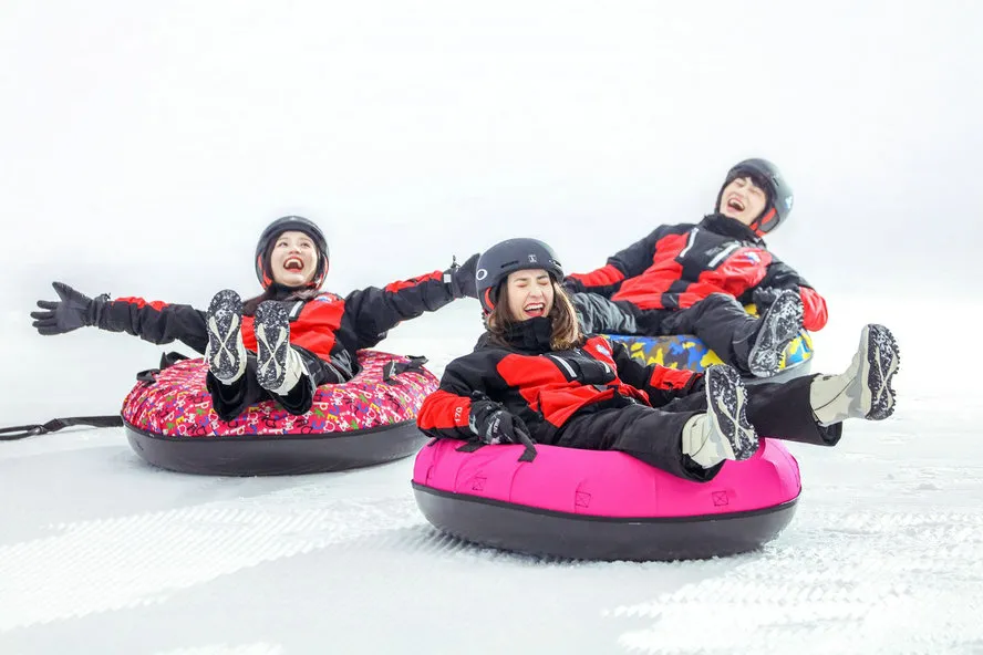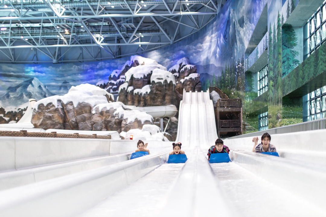 一楼客厅,还有一张麻将桌。果然很成都。基本上奥,不管是堇悦、嘉华、还是文华,只要你买的是套餐,大部分套餐都是会含了乐园门票的。每家酒店的前台都能扫脸,很方便,就省去纸质门票了。我个人觉得奥,要性价比高住堇悦,而且堇悦距离乐园最近,玩起来也方便。要住的好,躺在酒店的,选文华。温泉复式别墅,品质还是不错的。犹犹豫豫就选嘉华。再来说说乐园配套。去融创,肯定是要去玩乐园的。融创乐园的配套有陆(乐园)、雪(雪世界)、水(水世界)、海(水族馆)、运动(运动公园)。但很少一个项目中是所有乐园都全的,一般都是2-3个为主。成都融创有陆、雪、水。雪世界(雪)全球最大的室内滑雪场。6条雪道(高中低级都有)、1个单板公园。雪道总长度1300米、最大坡度21°、最大落差60米(约22层楼)。你要知道,国家队夏天训练、保持状态,就是会来成都融创的雪世界的。去融创滑雪,什么东西都不用带。门票里面都是含了雪具的租赁的。而且提供的设备都还不错,单板鞋有带BOA系统的,很好穿。头盔雪镜这些配件也都是一线大牌的,很少在雪场能看到出租Oakley头盔的。手套、雪服、雪镜这些都有租的,初学者不用自己买。不会滑雪,有教练一对一的教(当然这是要付钱的),或者是有教练一对多的教点基础,这个是免费的。不滑雪的话,雪世界里面还有很多雪上娱乐项目。冰上碰碰车、雪上坦克、冰上自行车等N多项目都可以玩,还有一个很大的冰雕馆。买了滑雪票这些娱雪项目都是免费玩的,也有单独的娱雪门票卖。融创乐园(陆)成都融创乐园6大主题曲,2条过山车,2场演出,1个飞行影院。它家乐园的一个好处,是不收门票!就是进乐园不用门票,玩项目才收门票,这样的好处是一家人一起进去,真不是每个人都吃得消玩过山车的。当然,套餐里包含的门票,就是乐园的通票了,你可以无限次的玩过山车了。成都融创乐园的造型,还是很Q的,有点意思。我最推荐的项目是《飞跃四川》,其实每个融创乐园都有飞跃项目。你可以把这个理解成迪士尼的飞跃地平线,带上3D眼镜,带你领略四川美景。真的超推荐,必玩。