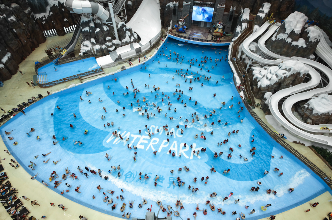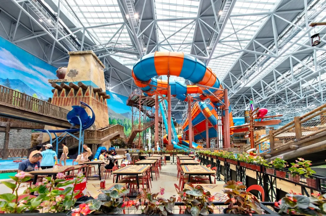 还有双弹射过山车,所谓双弹射,就是在过山车运行的途中,是会再加速一次的,绝对够爽!让你刺激连连。乐园里面有两场秀,一场是《马秀三国》,讲的是三国的故事。整个场景气势恢宏,很多在马上的打斗场面,看完会觉得特别震撼。剧情是比较诙谐幽默的那种,不会觉得枯燥无味。另外一个是冰舞剧场的音乐剧《爱丽丝梦游仙境》,是中国目前唯一的冰上特技歌舞剧。所有的演员都穿着冰刀鞋在冰上进行表演,即要滑冰滑得溜,还要完成一些非常有难度的动作。水乐园(水)成都融创的水乐园,总建筑面积3.5万㎡,是以冰川奇景、藏羌秘境为特色的大型室内恒温水乐园。水乐园是室内恒温的,所以全年可玩(当然前提是要开着)。成都融创的水乐园里还是有不少明星项目的,例如超2000㎡的造浪池,能造出高达1米的海浪。
