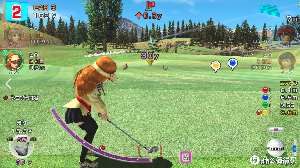 和现实世界的运动一样,大众高尔夫游戏也有个循序渐进的过程。在最新的《新大众高尔夫》游戏里面,挥杆击球被简化为“方向——力度——击球点”三步走的操,轻松上手。但要打出高水准的球技,还是要一步一步多练习后才容易成功。正旋球、后旋球、侧旋球等球技,也需要在游戏后期才会解锁。打着打着,您会发现自己已经从一开始只能勉强完成标准杆数的菜鸟,成为能轻易打出“老鹰”评价的大神了。