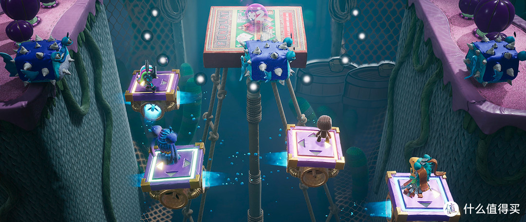 系列最新作《麻布仔大冒险》支持最多4人本地合作,画风有爱,上手简单,是个很适合亲友聚会时玩的游戏。它充分运用到了PlayStation 5 新手柄的新功能。例如,麻布仔与游戏世界里不同材质的物体互动,会有不同的震动反馈。这种充满触感的游戏世界,目前,在PlayStation 5以外的游戏机上,是无法体验到的。为了增加游戏的乐趣,游戏设计者为麻布仔设计了多种可用道具,使得玩法相对单调的平台跳跃游戏变得更为变化多端。至于游戏难度,即使是硬核玩家,想要全成就也并非轻而易举,游戏最后的关卡相对较难,很富有挑战性。