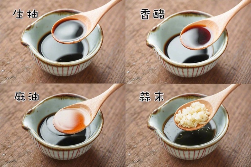 ▪️酱汁:4勺酱油+2勺香醋+1勺麻油+蒜末,好吃的酱汁就是这么简单。