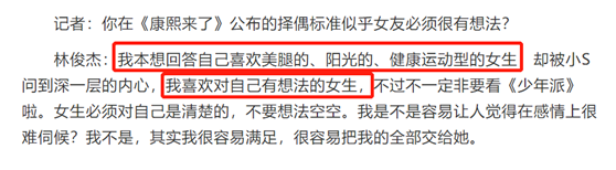 和潘玮柏相比,林俊杰的“风评”似乎要平稳不少。除了被誉为“超级富二代”,不好好唱歌就要回去继承家产以外,林俊杰还有一个为人熟知的称号:痴情于田馥甄。再加上他业务能力过硬,被称赞为“行走的CD”,所以很少有人把关注点放在他的情史上。多重身份叠加之下,林俊杰一度被外界当成感情经历十分干净的“专一男孩”。事实,真的如此吗?其实,十五六岁时,林俊杰就得到了某个女生的狂热追求,结果他没有看中追求者,反而是看上了她的闺蜜。有趣的是,他并没有享受到甜甜的初恋。彼时,林俊杰把家庭背景隐藏得较好,以至于初恋女友一直认为他是个穷光蛋,最后因此和他分了手,导致他日后提起这件事都难以释怀。而后,林俊杰不再是个体打拼,签约到音乐公司旗下,正式出道。也是这样,他认识了同公司的小师妹金莎,两人的关系一度被外界认为“亲密不已”,林俊杰也大方承认过对金莎有好感。但是,如果这样你以为他俩就能真的在一起,那就大错特错了。就在不少人磕林俊杰和金莎的cp时,他又传出了新绯闻。据悉,他曾给徐若瑄写了一首《爱笑的眼睛》,之后两人被拍到频繁接触,进而被报道关系“亲昵”的消息。与此同时,林俊杰还被传出了新的恋情。坊间传闻他当时的正牌女友是Weather Girls成员林采薇,就读于辅仁大学韩文系。只不过他俩的关系只是浮出水面,并未完全证实,所以这件事的热度很快便降了下去。然而,与林俊杰有关的绯闻消息却没有到此结束。之后,林俊杰推出新歌,坦言这首歌是写给自己意中人的,还描述过对方的外貌形态:长睫毛、小酒窝。同时,他和曾恺玹还有演戏上的合作,因此大家便把目光放到了这个女演员身上。但是,没过多久又传出阿Sa是林俊杰的绯闻女友,林俊杰在台上的“情深意切”更是让人沉溺其中。就在大众以为林俊杰和阿Sa才是真实情侣时,林俊杰却在演唱会上对金莎当众下跪求婚。正当cp粉磕得忘乎所以时,林俊杰又站出来自证:“求婚只是闹剧”。没多久,他还被爆出了新的“女友”:嫩模陈立冷。陈立冷算是林俊杰唯一承认的女朋友,所以不少人以为这位真的就是“正牌嫂子”了。然而,吃瓜群众又一次被打脸了。他俩恋爱时,某次外出看电影,陈立冷突然把矿泉水泼到记者身上,林俊杰只能连连道歉。或许有这层原因在里面,两人的关系没多久便以分手告终了。不过此时的林俊杰,早已不是当初那个为了初恋难过不已的清纯小男孩了。很显然,他没在这段感情中难过很久,就被爆出了新的亲密关系。当时他和廖语晴在演唱会上举止十分亲密。除此之外,林俊杰还曾表态想和廖语晴“舌吻”,表示好像爱上了她。不过,这种舞台上的“逢场作戏”还是不要当真。数月后林俊杰身边的“绯闻对象”就从廖语晴转换成了翁滋蔓。而后,林俊杰又被曝出带着吴佳真回家的消息。本以为林俊杰被各种八卦信息包围,无心顾及最初的女神田馥甄了,没成想他居然在演唱会上示爱田馥甄,自称已经喜欢hebe长达十年之久。还没等这场轰轰烈烈的表白余温过去,林俊杰又被曝出有了新任“J女郎”李心艾。随后,不少人开始质疑林俊杰并非真心喜欢田馥甄。质疑声越来越大时,林俊杰立刻站出来表示自己很久未曾恋爱,心里都是女神田馥甄。结果,自称心中只有田馥甄的林俊杰,接连又被曝出各种花边新闻。比如2014年被曝出他和高宇蓁正在秘密恋爱。2015年,被某位地下rapper痛揍一顿,这位rapper还直言林俊杰喜欢乱把妹。紧接着,又有媒体曝出林俊杰和大学生约会。此外,还有媒体爆料林俊杰带着长腿妹回家。直至2017年,林俊杰的绯闻对象兜兜转转到了林采薇身上。彼时,他俩在网上晒出同一条狗Momo,并自称自己为Momo的“爸爸妈妈”,才被猜测两人是否已经复合。次年,林俊杰还被网友扒出疑似和主播baby半仙恋爱的消息。最让人意想不到的,则是林俊杰还被卷入深夜找他人老婆“聊天”的风波之中。从外表来看,林俊杰喜欢美腿、阳光、健康运动型的女生,深入到内心,则喜欢有想法的女生。也不知道最后到底谁能降服他。