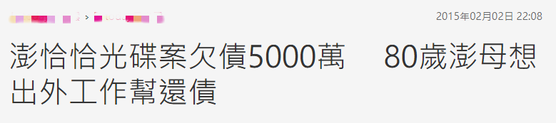 生活中的澎恰恰卻截然相反,2003年他被曝出不雅光碟,遭到偷拍者的勒索,被迫支付了4350萬台幣高額贖金。