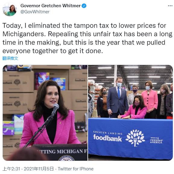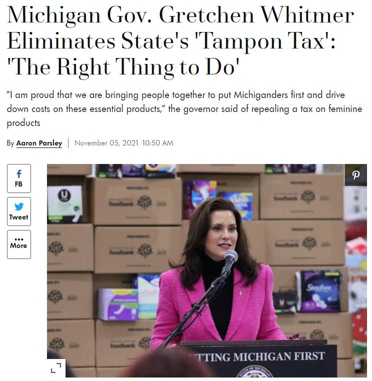 “取消了卫生棉条税,降低了密歇根居民的生活成本。