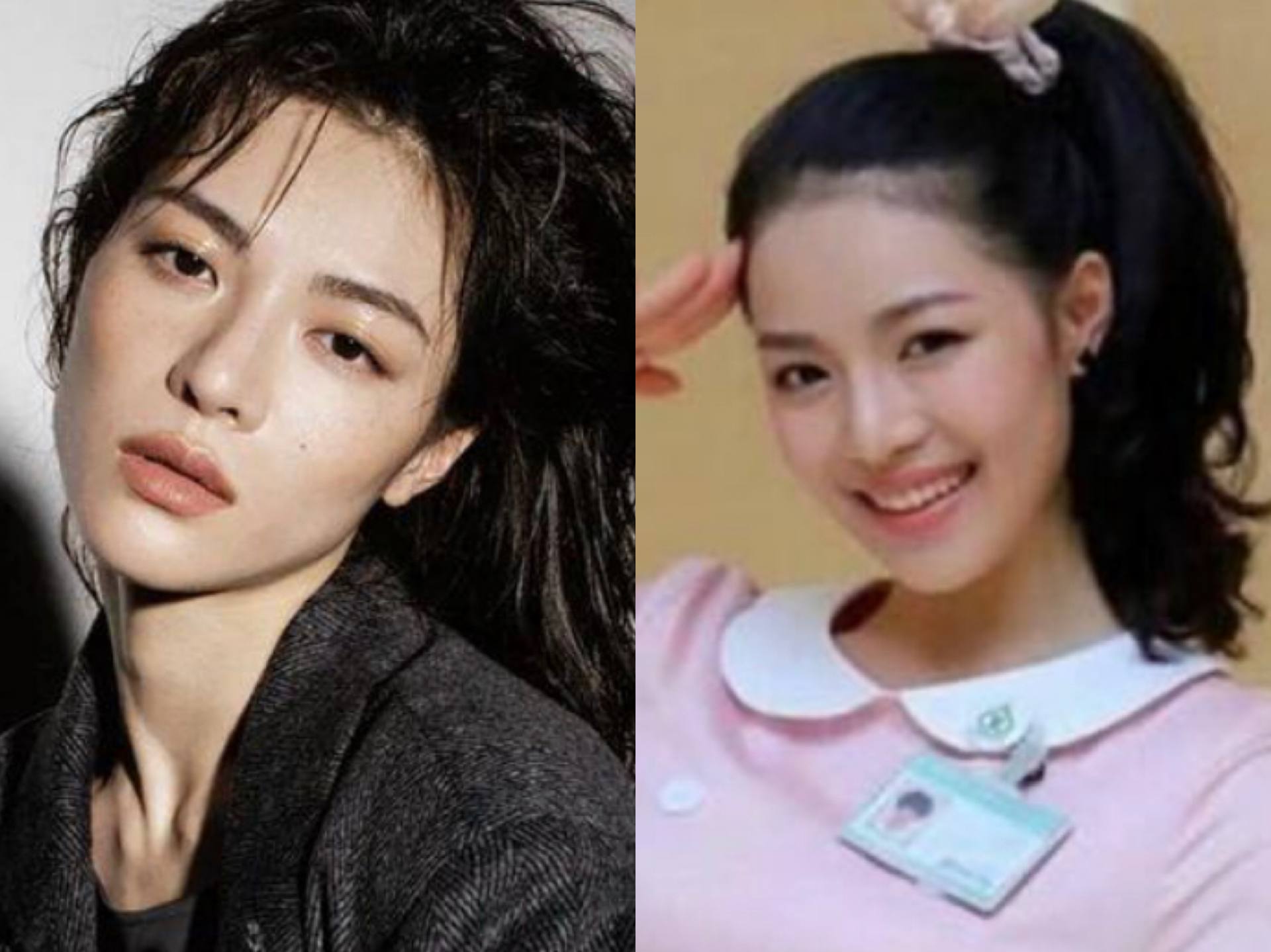 刚出道时,她的脸还比较肉,上镜时脸型没啥太明显的硬伤,但看起来土土的。