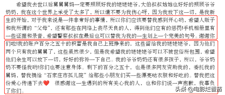 决定与这个世界告别后,他也写下了自己对身后事的最后安排——他的手机中保存了一些关于人贩子的证据与录音,希望这些能帮助警察叔叔将那些人贩子绳之以法。