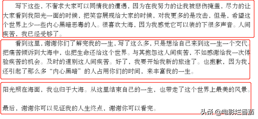 最后,他说,“人间疾苦,我已经受够了,谢谢你可以见证我的人生终点,谢谢你可以看完!”