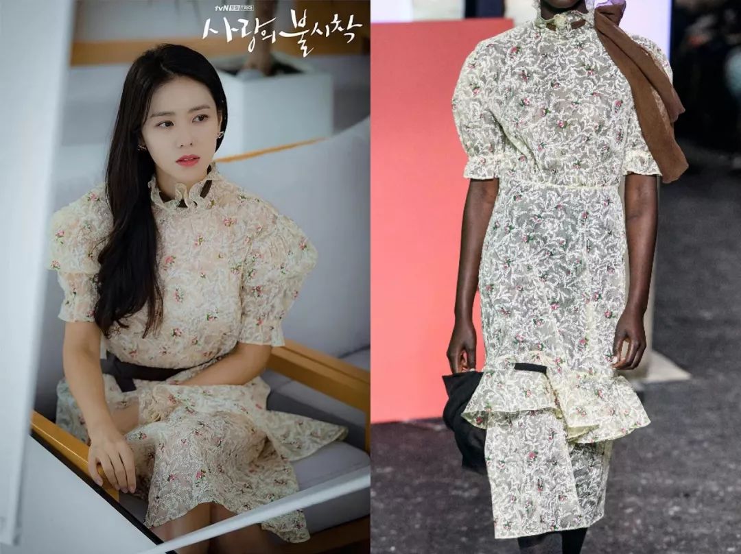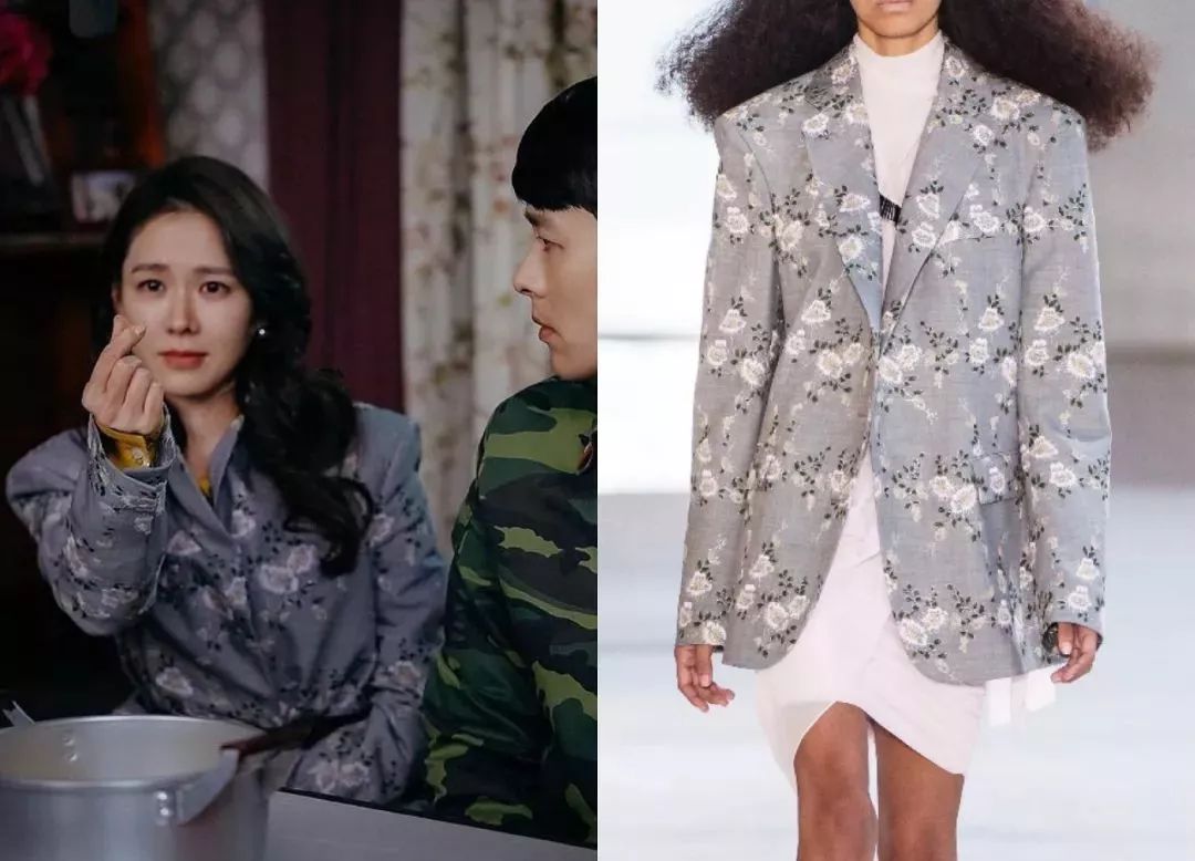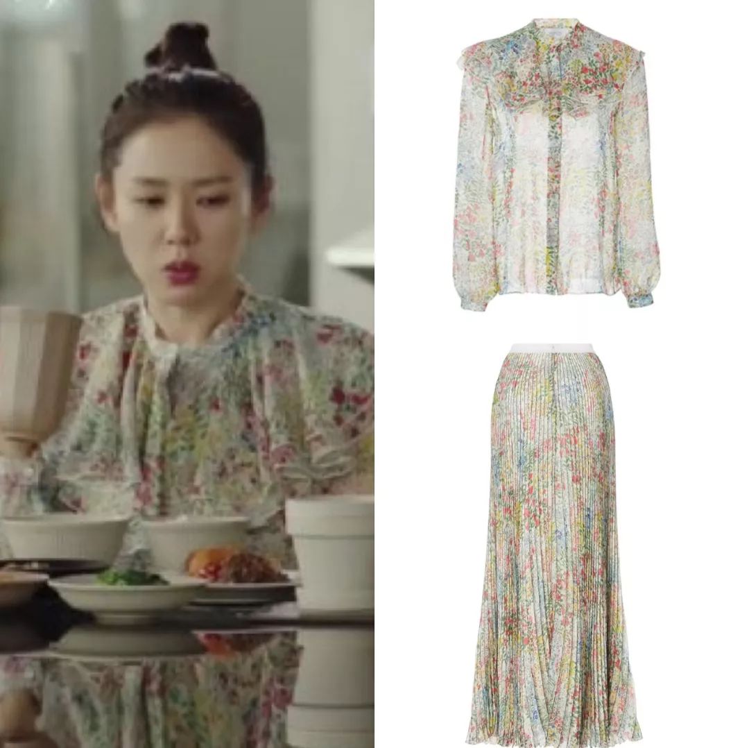 - 时间: 2022-2-13 19:05还有这件Vivienne Westwood大衣,大翻领+oversize版型,穿上有种泰迪熊外套的效果,可爱又保暖。她还穿过一件黑色皮夹克,来自法国轻奢时装品牌IRO,他家皮衣是招牌,设计摩登现代,随便搭条牛仔裤就很飒。这件黑色毛领羽绒服外套是Nobis的,这个加拿大奢华羽绒服品牌比大鹅、Moncler小众很多,派克大衣式的外形也是非常低调简洁。Tory Burch的裹身裙被她当做家居服,黑白配色简约优雅,细节又不失度假风情,在家泡个澡也要美美哒~吸睛印花裙印花单品在剧中出镜率也特别高,比如瑞士剧照里穿的印花上衣和半裙,温婉清新,来自意大利品牌BLUMARINE。在宴会上穿的这一袭花朵连衣裙,勾勒出她的完美身形,非常明艳动人,真·人间富贵花↓平时吃个饭穿的都是Giambattista Valli,田园风小碎花浪漫又减龄。这件来自Miu Miu 2019秋冬秀场,泡泡袖+荷叶边,妥妥的小仙女。她在朝鲜也穿了不少印花单品,比如这件浅灰色碎花外套,剧中设定是从服装摊上买回来的,但它实际上是Giambattista Valli的秀场款,就连内搭露出一个边的黄色裙子也是Mulberry,只能说女主置装费真的很给力。Reformation小雏菊连衣裙叠搭毛衣,再梳一个麻花辫,满满的少女气息~逛个路边摊也能激发时尚灵感,女主的花式叠搭看呆了朝鲜大妈,左边这件连衣裙来自设计师品牌Romanchic↓总之各种难驾驭的碎花单品,都被孙艺珍穿出岁月静好的感觉,不少网友表示这样的乡村爱情我也想要拥有~温柔针织衫细心的范友一定发现了,女主平时还经常穿针织衫,温温柔柔的让人很有保护欲。这件彩色色块毛衣就让很多人种草,来自韩国品牌Studio Tomboy,1000多元人民币可以入手。粉色毛衣来自SJYP,不少年轻妹子买过这个韩国牌子,价格同样是1000多元。尹世莉第一次出场时穿的鹅黄色针织开衫是Max Mara,马海毛材质毛茸茸的,当做外套穿在连衣裙外面,很有大小姐气质。这件松石绿色开衫来自法国品牌Rochas,水钻胸针凸显女人味,比较精致。灰色短开衫则是Miu Miu,五分袖和短剪裁设计刚好秀出腰线,干练显身材~