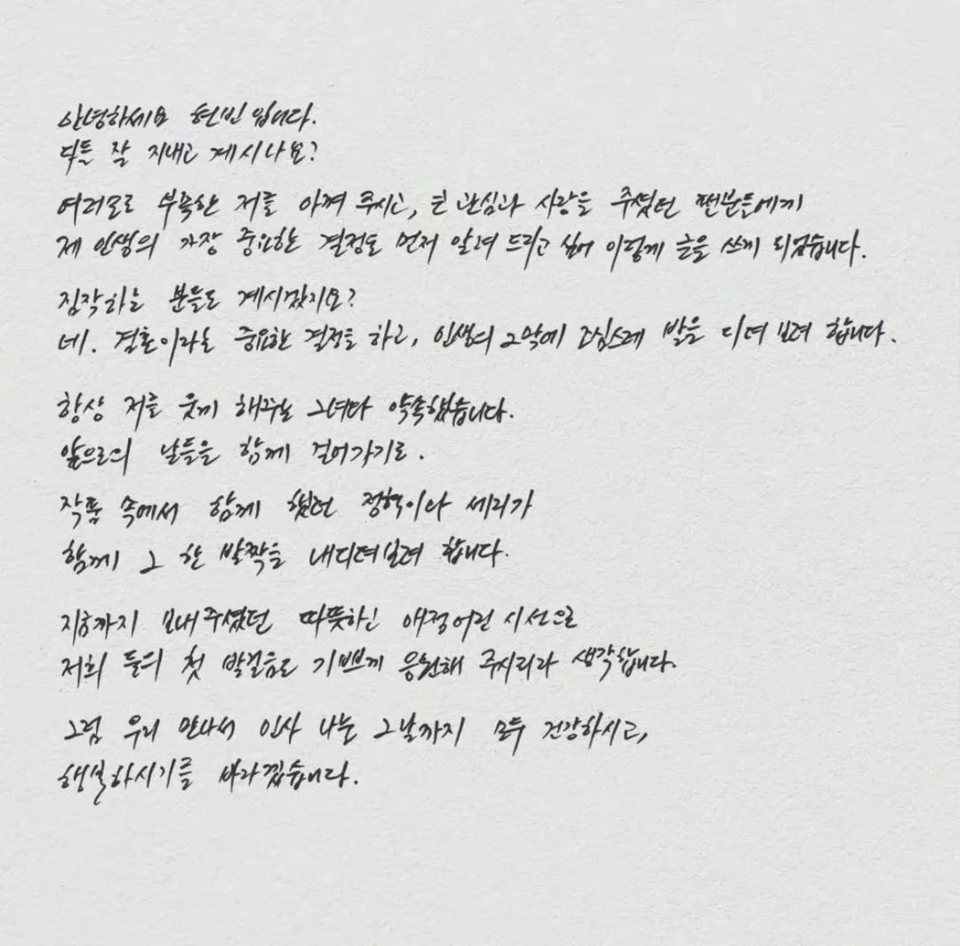 先是新郎玄彬通过公司账号发布了两人的牵手照和一封手写信↓