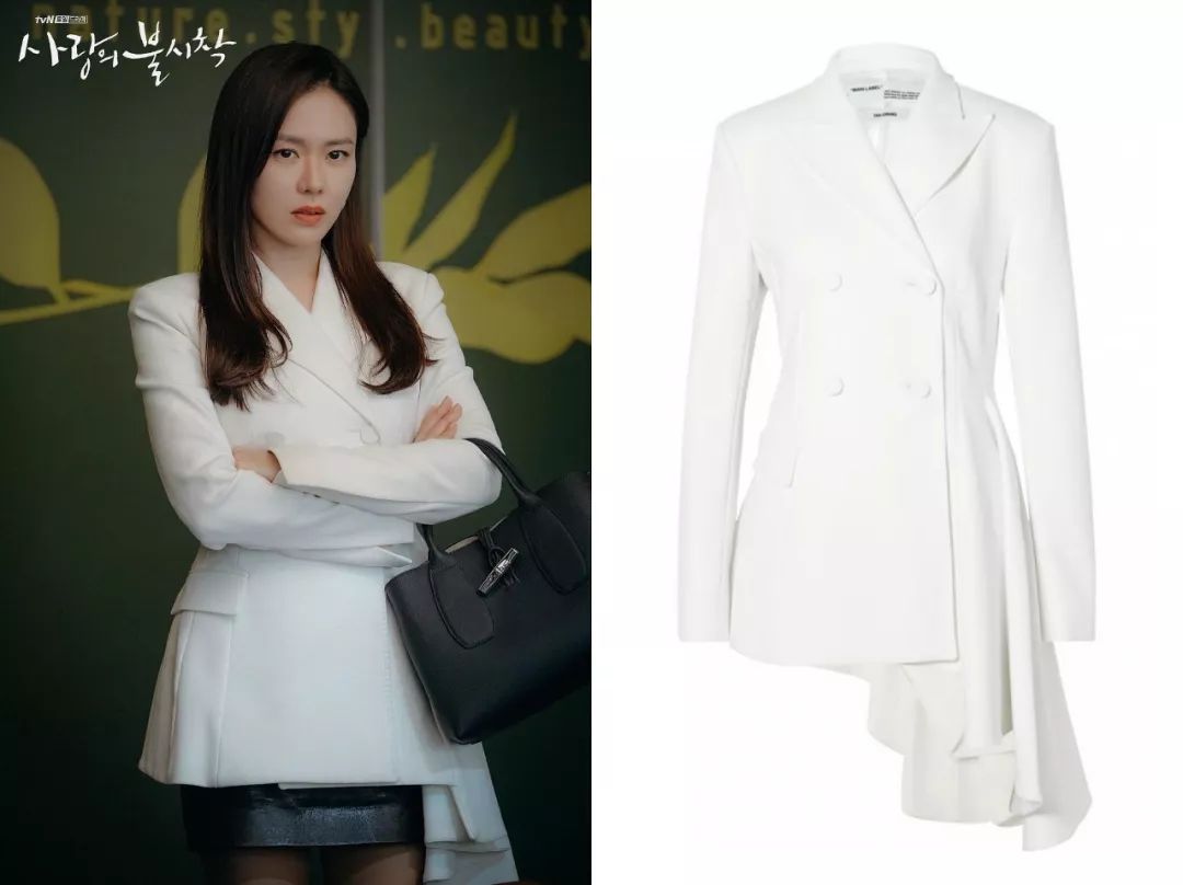 Off-white白色西装带有不规则下摆,有种时尚女魔头既视感。