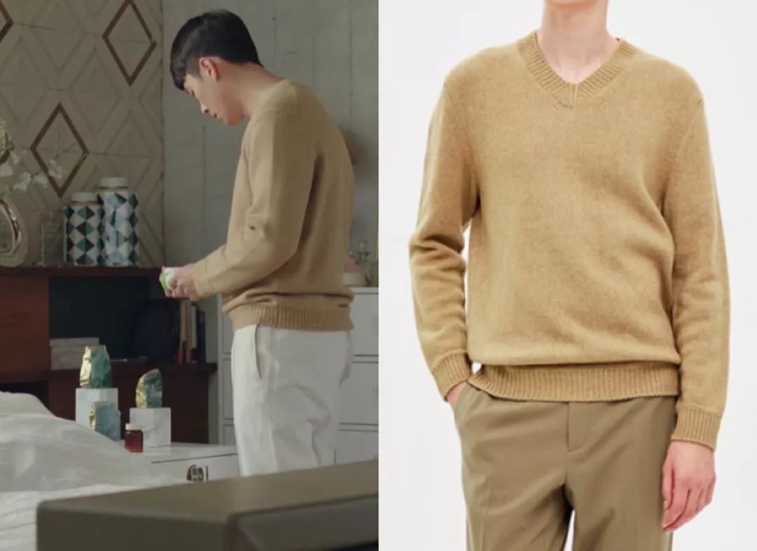 穿起西装三件套和戗驳领大衣来也是非常可,长腿欧巴谁不爱呢~居家换上羊绒衫又很暖男,这件来自韩国品牌the CASHMERE,价格约合人民币1800元。男二具承俊穿衣也十分讲究,精致中透着骚气。他穿的大多是韩国本土品牌,这件不对称毛衣来自SYSTEM HOMME,价格2500元左右。深蓝条纹西装来自SIEG,具承俊的很多衣服都是这个牌子,他家价格在1000-3000元不等,很好入手。生活方式篇