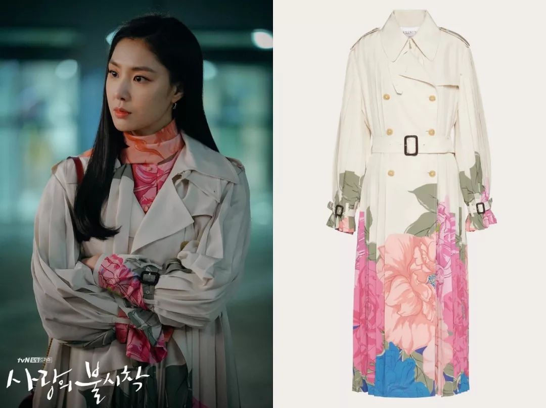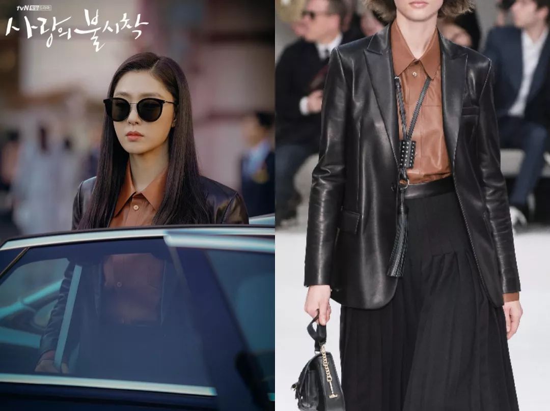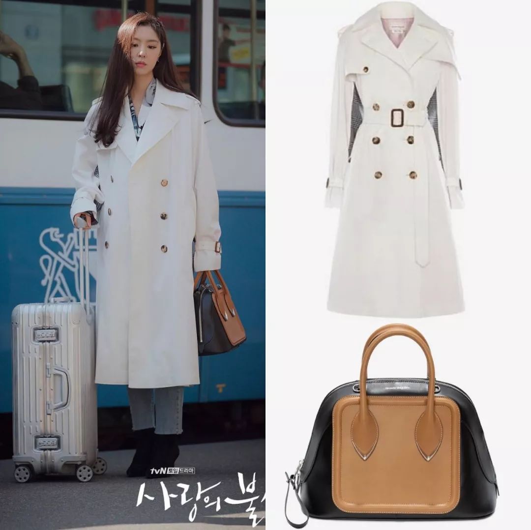 女二徐丹是朝鲜本土名媛,作为百货商场老板的女儿,出身也很显赫。她原本是男主的未婚妻,但后来和男二意难平,让不少网友感到惋惜。虽然结局比较虐,穿衣品位却丝毫不输女主,文艺高级气场十足。像是这件Valentino风衣,大面积印花不是谁都能hold住的。Loewe格纹大衣+Loewe Gate包,看起来不失亲和力,又有种复古学院风。白色风衣和包包都来自Alexander McQueen,整体清新干净,有种文艺片女主既视感。去年非常火的皮西装、皮衬衫她也穿过,这一套都来自Tod's 2019秋冬秀场,瞬间变成霸道女总裁范儿。墨镜是Gentle Monster