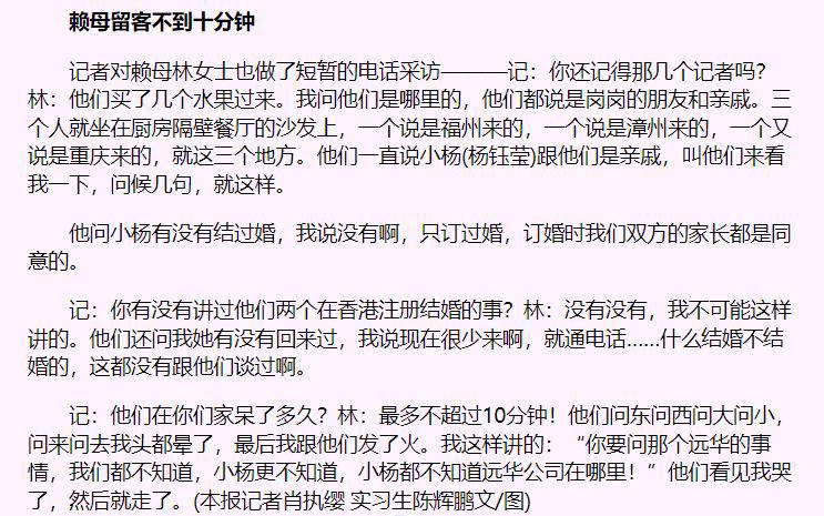 賴文峰的母親後來也表示,自己並沒有說過他們結婚的那番話。