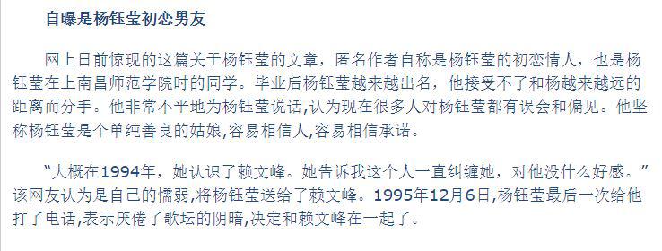 該爆料者自稱是楊鈺瑩在南昌師范學院時的同學,當時兩個人在談戀愛。