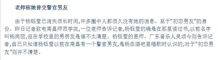 他只知道楊鈺瑩早年在南昌,曾經和一個警察交往過。