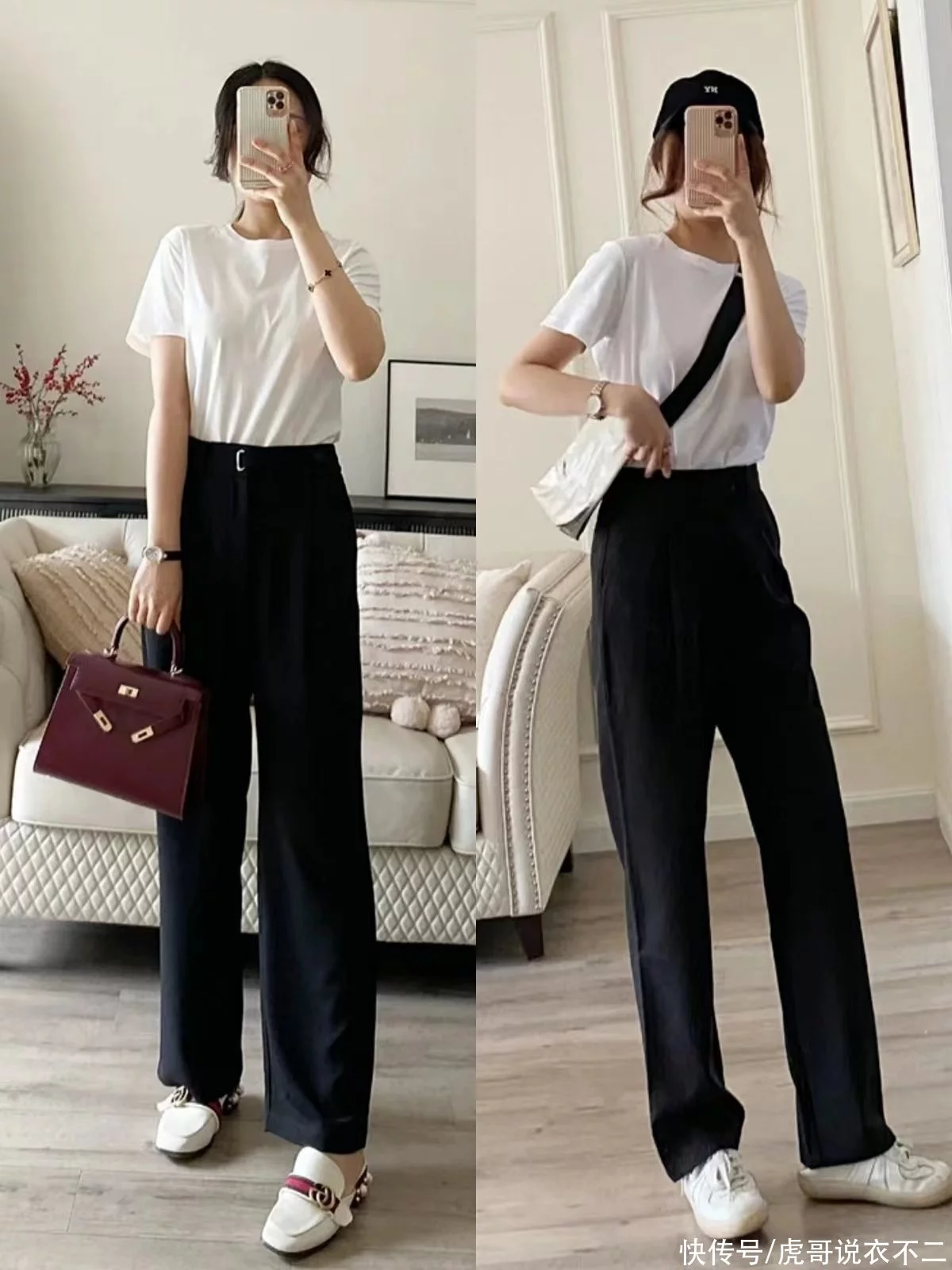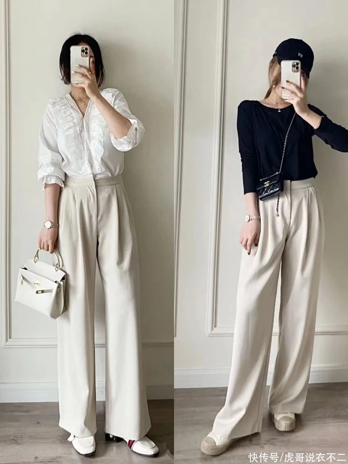 1、白色阔腿西裤