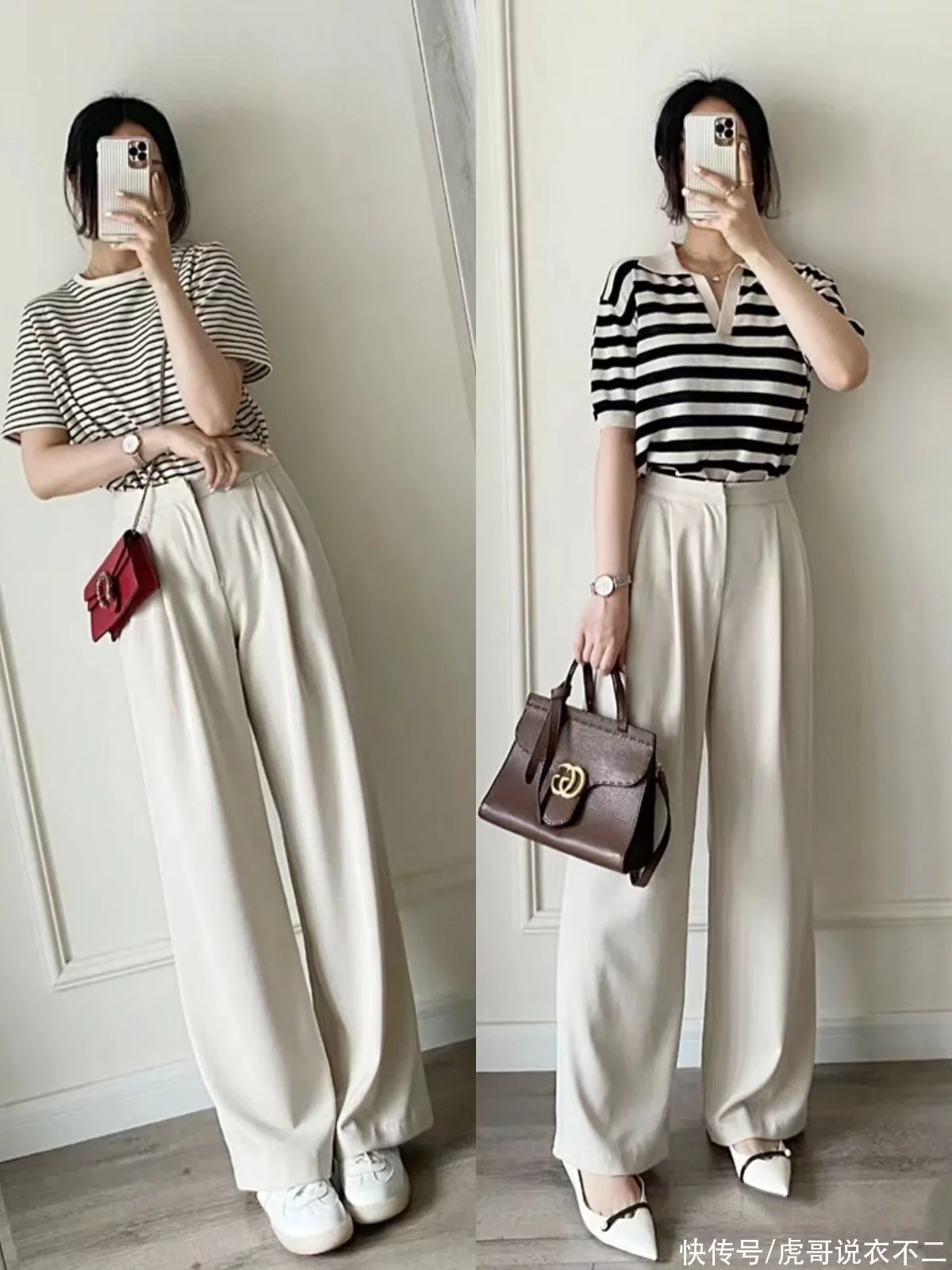 三、阔腿裤与平底鞋、带跟鞋的搭配都时尚