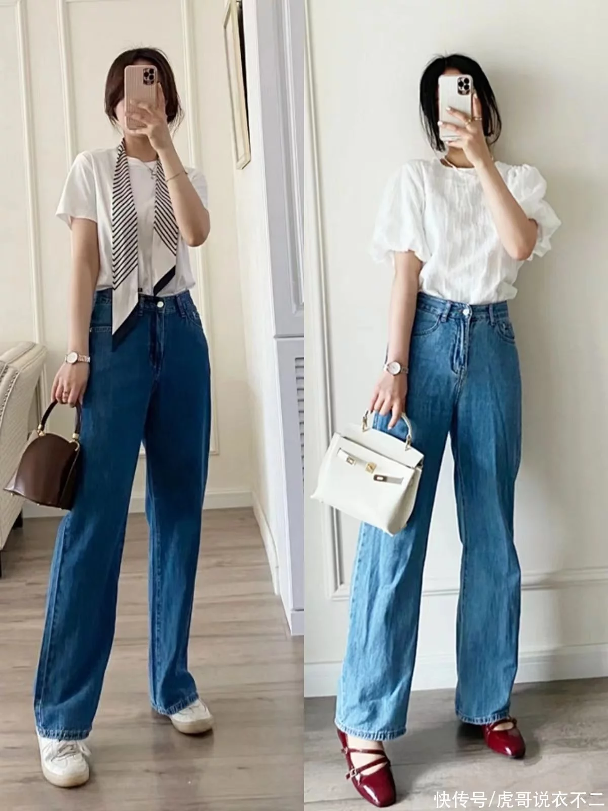 二、阔腿牛仔裤,休闲又时髦