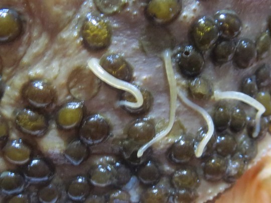 蟲卵狀態時是黑色一點點,成蟲則長達10厘米,還時不時會郁動。