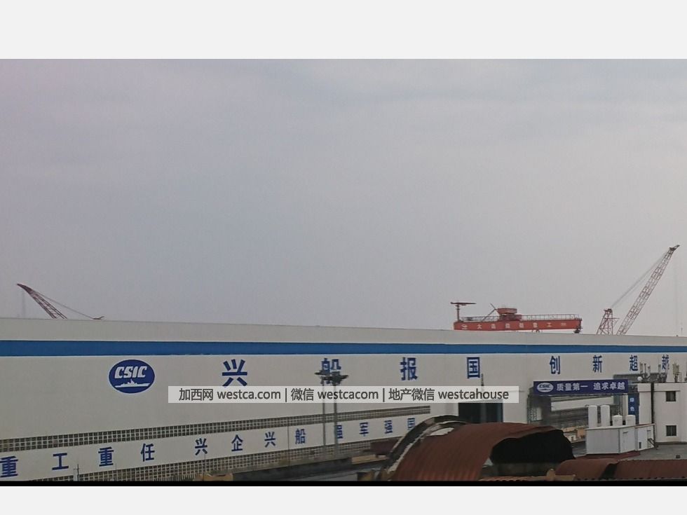 大连造船厂的厂房外部书写有“兴船报国、创新超越、重工重任、兴企兴船、强军强国”等标语。(图源:超级大本营军事论坛)