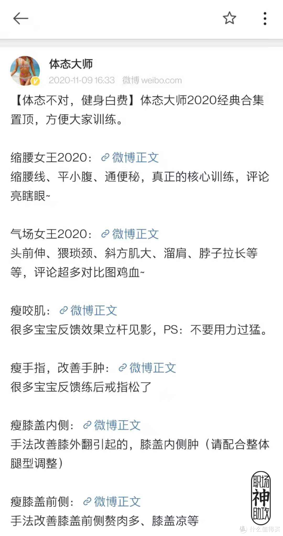 以上体态修正类的训练动作都相对轻松,容易坚持,但是对有瘦身需求的小伙伴们可能不太够。