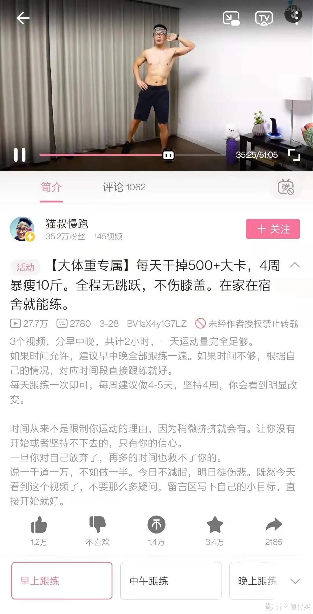 虽然 B 站上同类局部健身视频不少,但我个人觉得叔贵的是最友好的,因为他的训练动作,大多会考虑到上班族和学生党的需求,简单易操作,对器材和场地的要求比较小。
