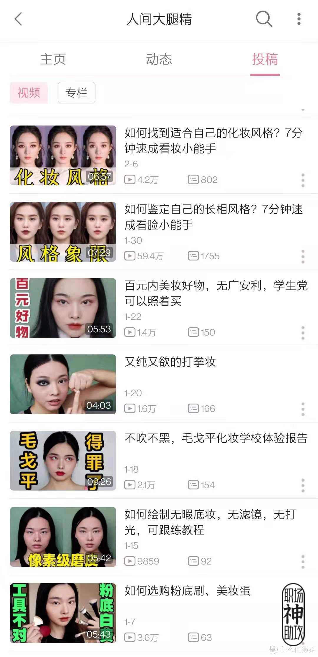 此外,大家翻她的主页会发现,腿精也是一位美妆 UP 主,会出一些干货类的变美教程。