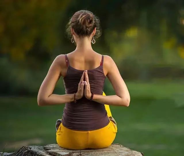 将双手合十放于背部,慢慢向上延伸到个人极限。注意要沉肩,并且能明显感受到肩部、胸部有伸展拉伸的感觉。