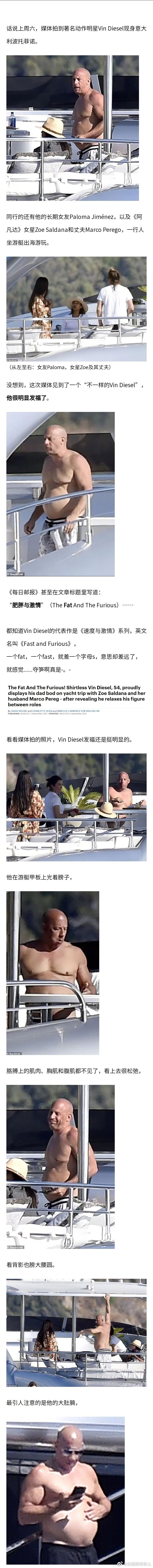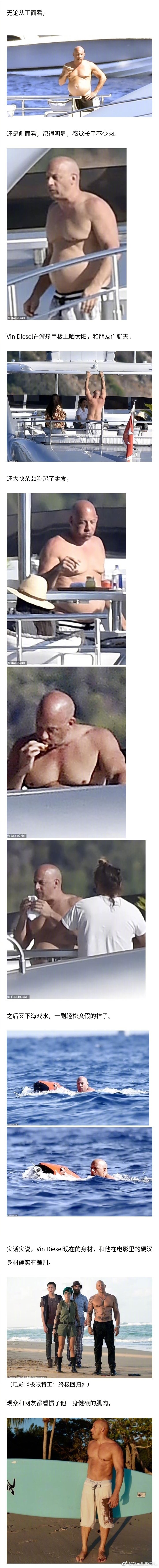 54岁的范·迪塞尔海边度假被拍到身材发福,腹肌变成大肚腩......